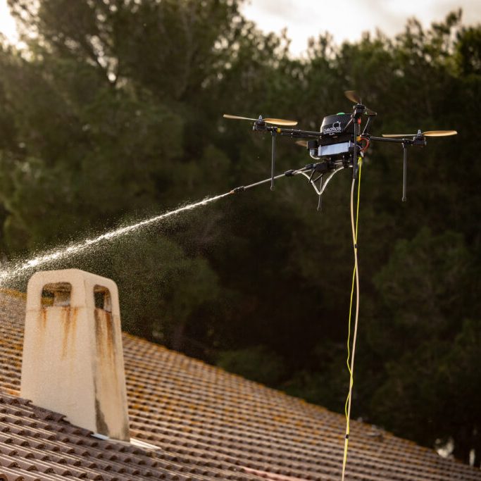toujours plus haut les nids de frelons asiatiques ne connaissent pas de limites de hauteur. C'est pourquoi Droneclean & Protect est en mesure de les détruires , peu importe la hauteur ou l'endroit improbable, grâce à son Drone "JOKER"