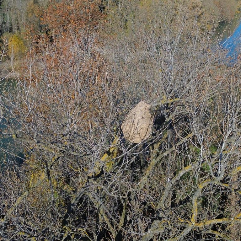 toujours plus haut les nids de frelons asiatiques ne connaissent pas de limites de hauteur. C'est pourquoi Droneclean & Protect est en mesure de les détruires , peu importe la hauteur ou l'endroit improbable, grâce à son Drone "JOKER"